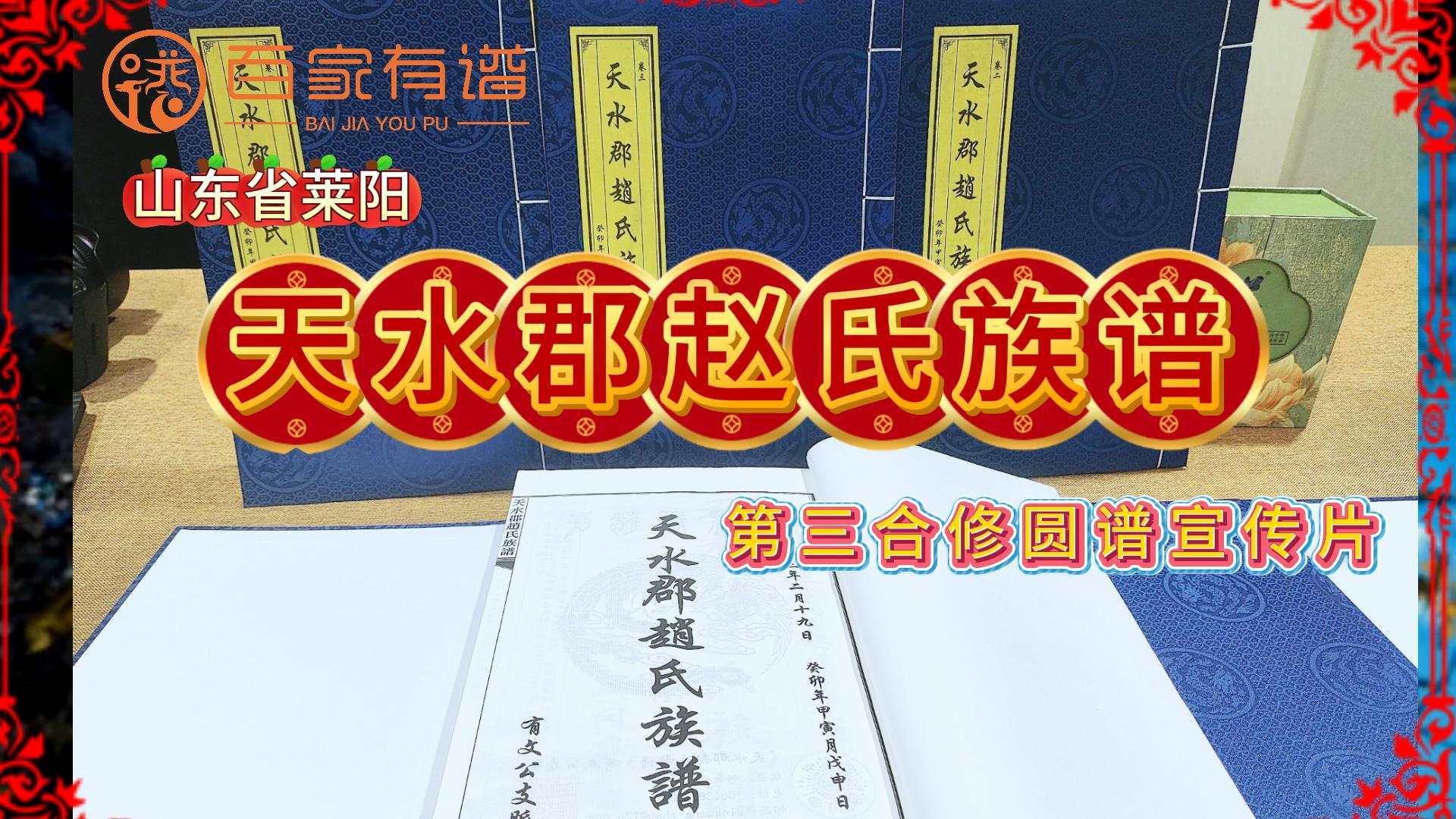 今天,百家有谱与莱阳天水郡赵氏宗亲一同怀着崇敬与喜悦的心情,向海内外赵氏宗亲郑重宣告——由百家有谱提供专业编修支持的 《莱阳·天水郡赵氏族谱》第三次合编,圆满功成。